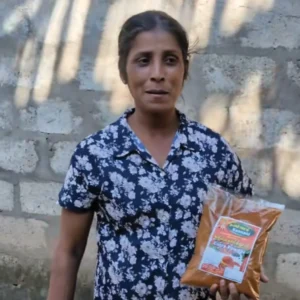 In 2009, during the civil war, Mrs. Sasikala was pregnant. She lost her husband and her right foot. She gave birth to a daughter, and her second child—a son—was born under extremely difficult circumstances. Since birth, he has lived with a severe disability and is now 16 years old. He is completely dependent on his mother, who cares for him full-time. As a result, she cannot work outside the home. Nevertheless, she found the courage to start her own company, Kannaki Industries, where she plans to produce curry spices, dried chilies, and other products.